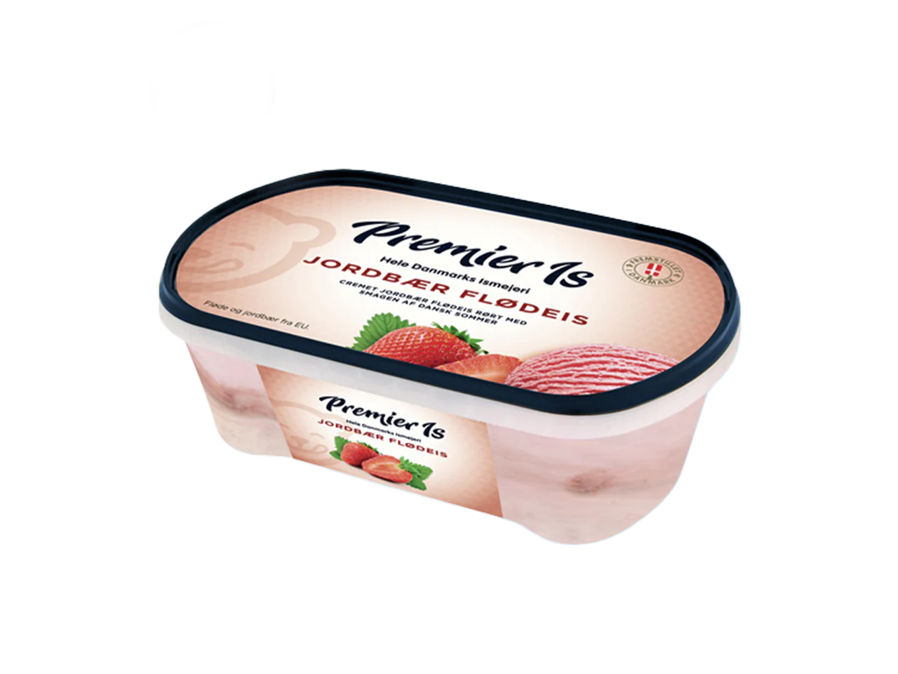Kremet jordbær fløteis, rørt med smaken av sommer. Hele 39 % fløteinnhold!..