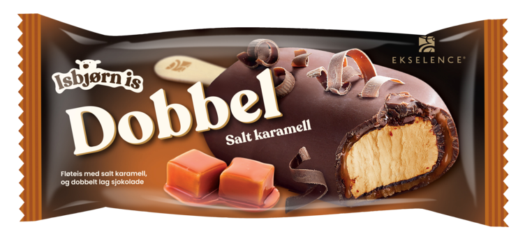 Make it a double! Nydelig, elegant fløteis med karamellsmak, dyppet i dobbelt lag sjokolade og salt karamellsaus. Skapt for små og store øyeblikk.